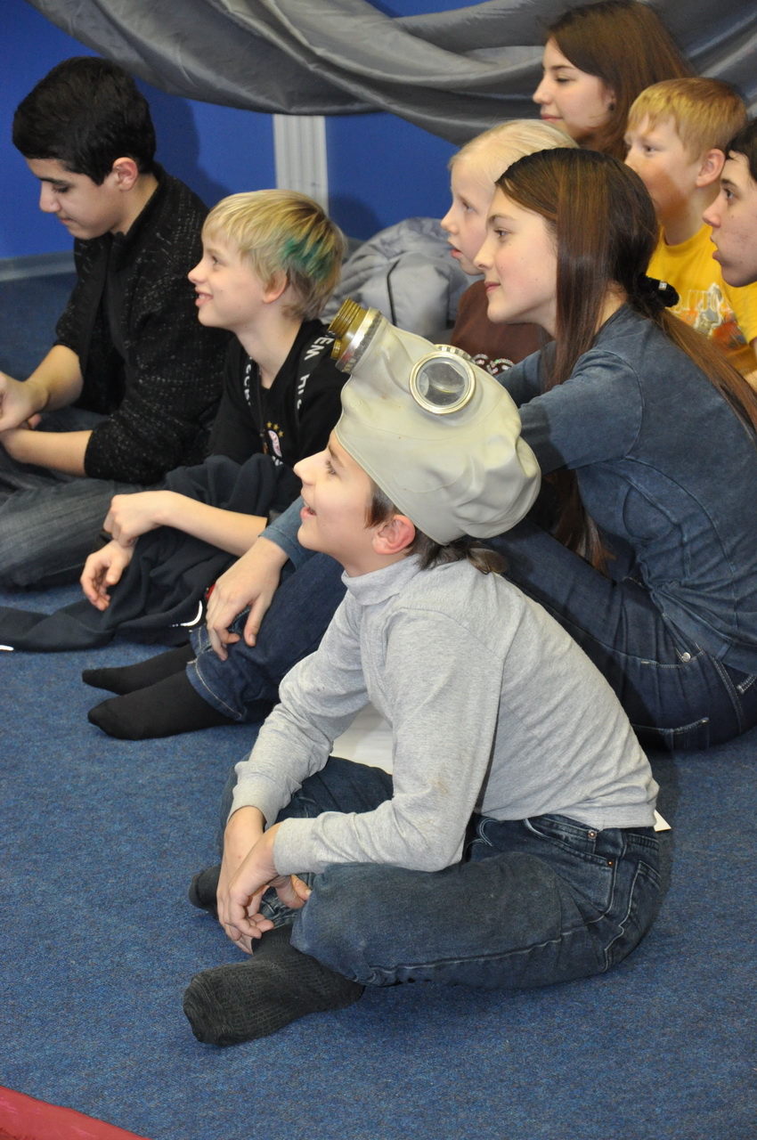 Нам начали объяснять правила безопасности на авиалайнере. Потом каждое ИА (информационное агентство) представляло свою расу. Потом наш корабль захватили пираты, а когда мы спели песню, им стало плохо, и они улетучились.
